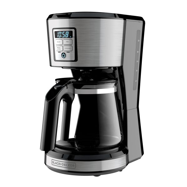 Savourez l’arôme riche du café infusé par la cafetière programmable de 12 tasses* BLACK+DECKERMD. La pomme de diffuseur dotée de la technologie VORTEX sature uniformément le café moulu pour en extraire un arôme riche et puissant à une température optimale de l’eau. Vous pouvez modifier la force du café en optant pour un processus d’nfusion plus lent et un café plus fort. La technologie Sneak-A-CupMC vous permet de verser une tasse de café avant que le reste de la cafetière ne soit infusé, sans qu’il ne coule ou se renverse. En outre, la minuterie de fraîcheur d’infusion indique depuis combien de temps le café a été maintenu au chaud.