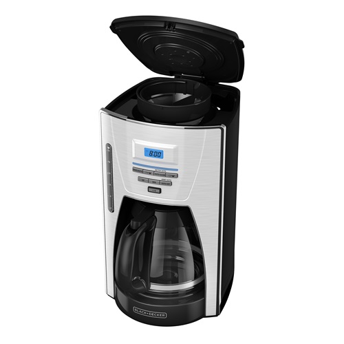 Préparez votre café quotidien rapidement à l’aide de la cafetière programmable 12 tasses* BLACK+DECKERMD. Le tableau de commande numérique facilite le réglage de la fonction d’infusion automatique de 24 heures et le panier-filtre amovible est facile à nettoyer. Parmi les autres caractéristiques pratiques figurent la technologie Sneak-A-CupMC, la verseuse en verre PerfectPourMC de 12 tasses, l’option d’infusion de 1 à 4 tasses et un sélecteur de force de café.