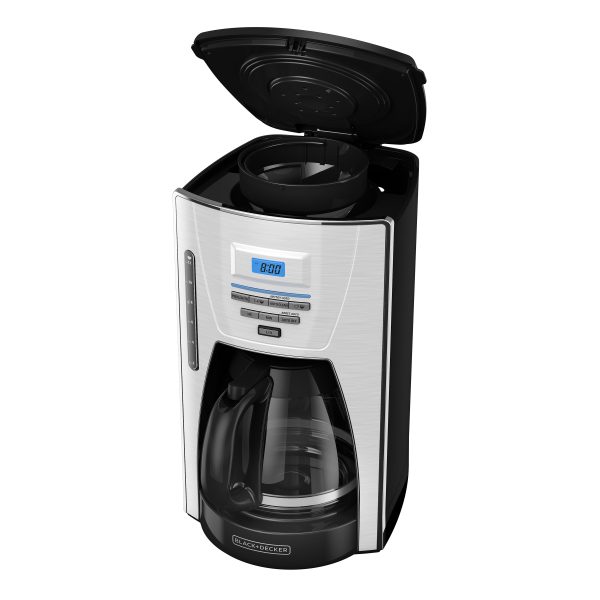 Préparez votre café quotidien rapidement à l’aide de la cafetière programmable 12 tasses* BLACK+DECKERMD. Le tableau de commande numérique facilite le réglage de la fonction d’infusion automatique de 24 heures et le panier-filtre amovible est facile à nettoyer. Parmi les autres caractéristiques pratiques figurent la technologie Sneak-A-CupMC, la verseuse en verre PerfectPourMC de 12 tasses, l’option d’infusion de 1 à 4 tasses et un sélecteur de force de café.