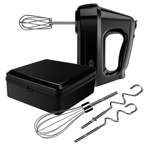 The BLACK+DECKER® 6-Speed Hand Mixer is for every mixing task. With five dishwasher-safe attachments, you can easily stir, beat, whisk, whip, and even work with dough. With 250 watts of power and a Turbo Boost button, you can do it all in no time. Plus, the starting speed is slower* for less mess mixing!