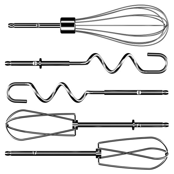 • 5 Professional-style Attachments: 2 beaters, 2 dough hooks, 1 whisk